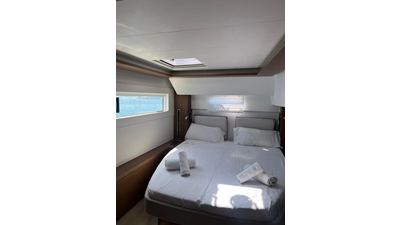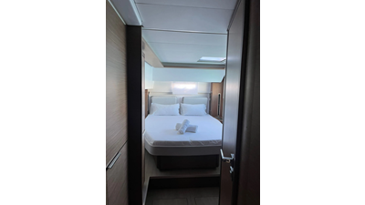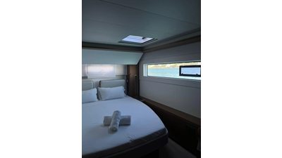 Thirteen is a very well equipped Lagoon 46. The impressive layout of this boat provides 3+1 cabins and same number of toilets with an amount of space that is out of the ordinary. You will find that on this boat both stern and bow cabins count with the same amount of space. This boat has the most space you could ever find on 46ft catamarans. The finishing's on the interior are of utmost quality and the lighting was carefully thought for the guests’ comfort. The hydraulic bathing platform at the stern, the AC and watermaker are some of the features that make vacations on board of Thirteen unique.
